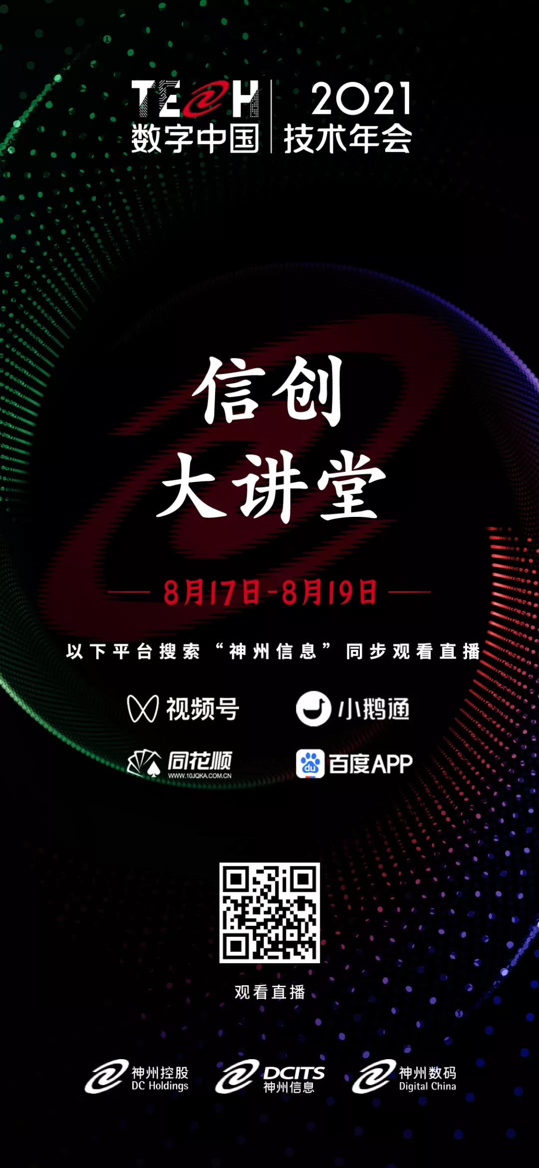 TECH数字中国2021技术年会 | 信创大讲堂,今晚7:30准时开讲