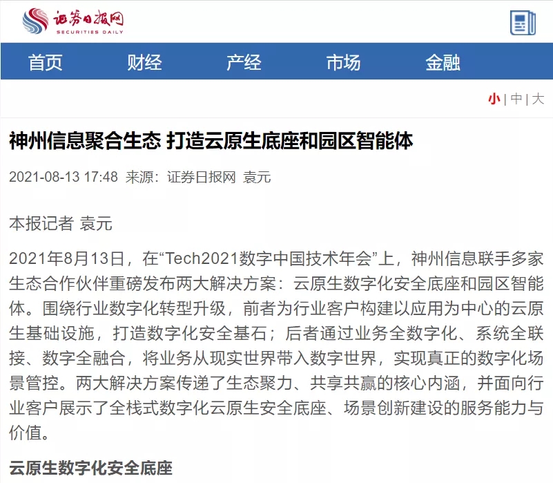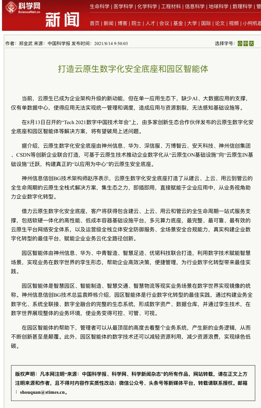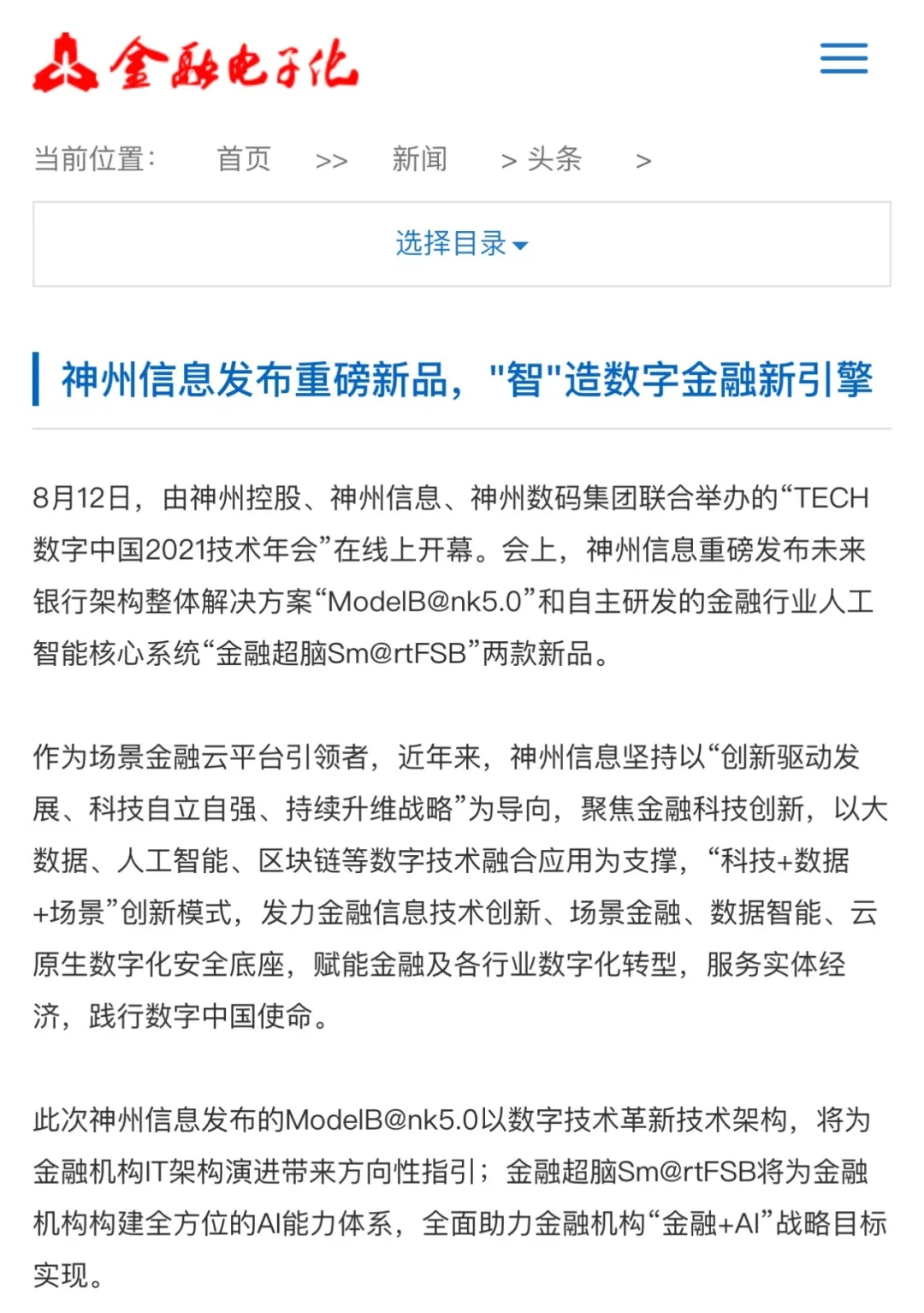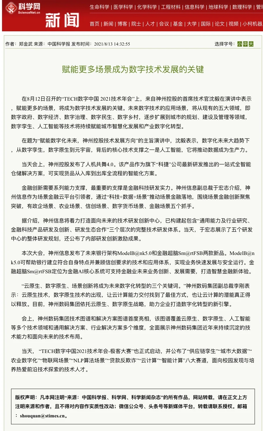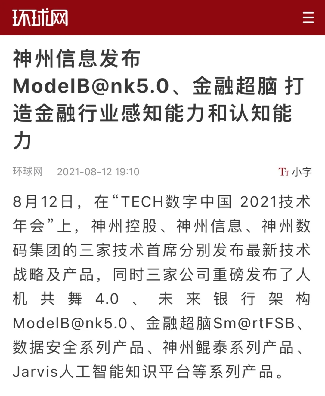 8月12日,由尊龙凯时人生就是博首页控股、尊龙凯时人生就是博首页信息、尊龙凯时人生就是博首页数码集团联合主办的“科技自强、数据融通、场景创新——TECH数字中国 2021技术年会”云上盛大启幕,发布尊龙凯时人生就是博首页信创云、ModelB@nk5.0、金融超脑Sm@rtFSB、云原生数字化安全底座、园区智能体等重磅产品,国内各大权威、影响力媒体多角度多频次对盛况进行报道!