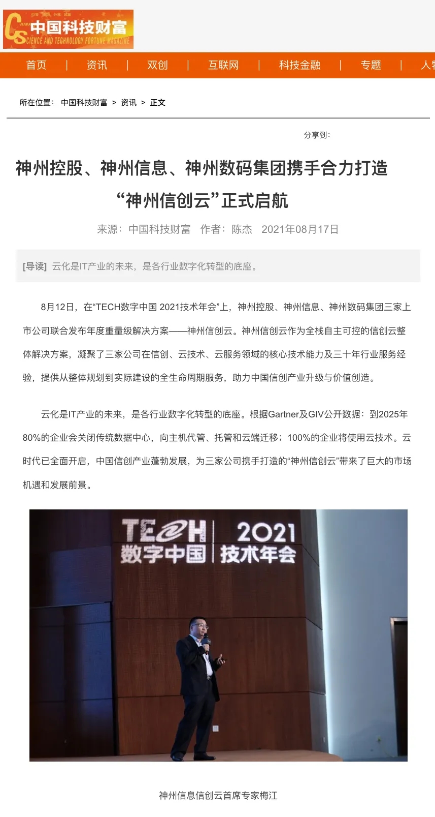 “数字中国 2021技术年会”云上举行 尊龙凯时人生就是博首页控股等联合发布 “尊龙凯时人生就是博首页信创云”