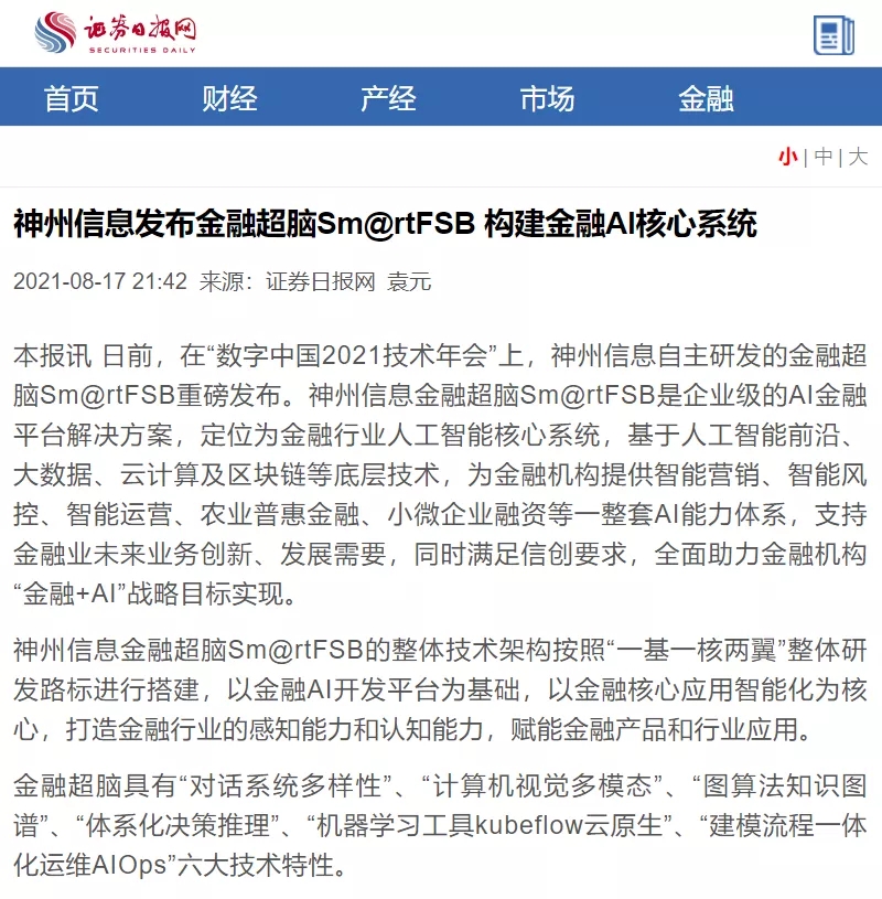 尊龙凯时人生就是博首页信息发布金融超脑Sm@rtFSB 构建金融AI核心系统