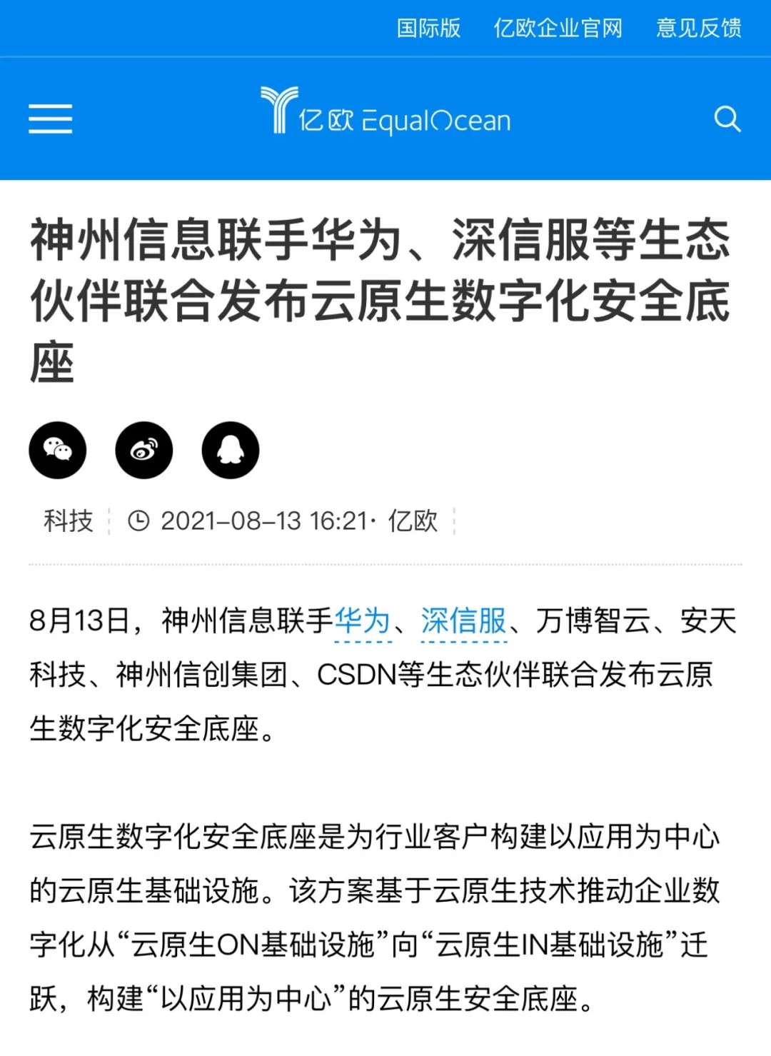尊龙凯时人生就是博首页信息联手华为、深信服等生态伙伴联合发布云原生数字化安全底座