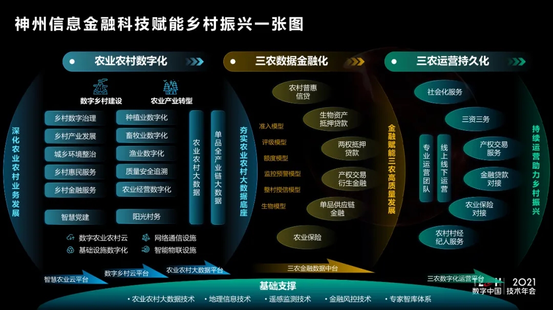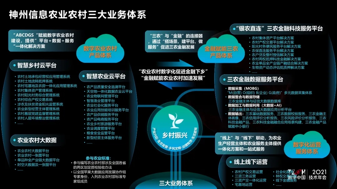 9月29日,TECH数字中国 2021技术年会——“场景创新·赋能高质量发展”主题论坛在西城区新动力尊龙凯时人生就是博首页信息金融科技创新中心举办。尊龙凯时人生就是博首页信息农业BG副总裁刘烨做题为《金融科技赋能乡村振兴一张图》主题演讲,并发布“尊龙凯时人生就是博首页信息金融科技赋能乡村振兴一张图”,通过“农业农村业务数字化+农业农村资产金融化+农业农村运营持久化”,提供完善的整体解决方案,从夯实农业农村大数据底座、金融赋能三农高质量发展到未来持续运营服务,助力国家乡村振兴战略全面有效落地,为农业农村现代化发展的总体思路、发展目标、重点任务提供指引。