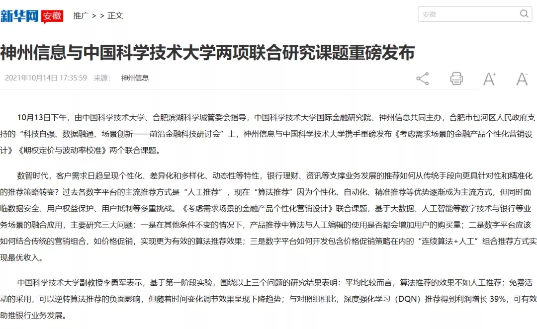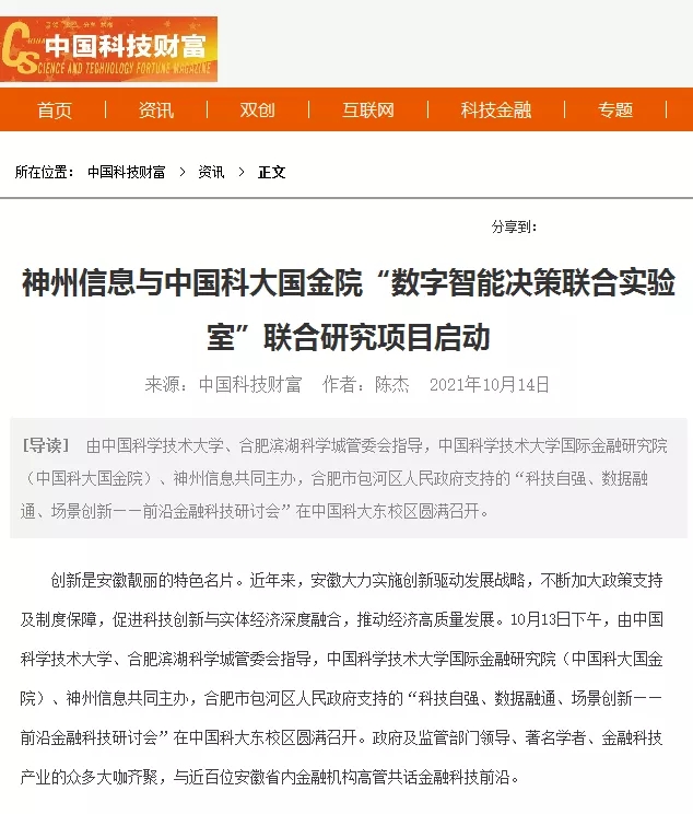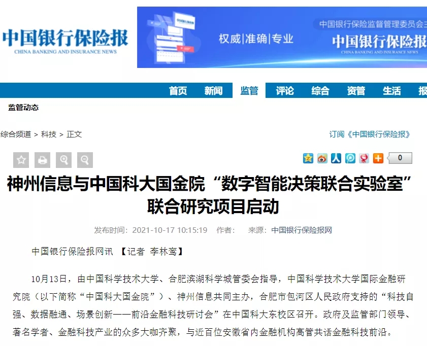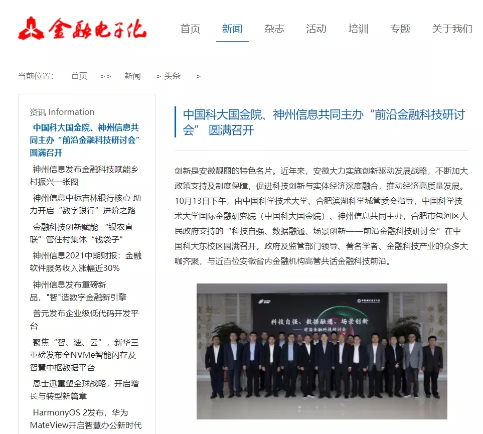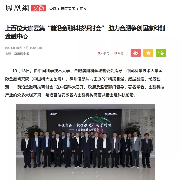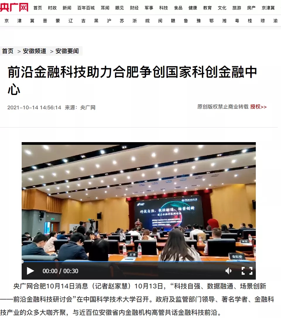 近日,由中国科学技术大学、合肥滨湖科学城管委会指导,中国科学技术大学国际金融研究院、尊龙凯时人生就是博首页信息共同主办,合肥市包河区人民政府支持的“科技自强、数据融通、场景创新——前沿金融科技研讨会”在中国科大东校区圆满召开。政府及监管部门领导、著名学者、金融科技产业的众多大咖齐聚,与近百位安徽省内金融机构高管共话金融科技前沿。全国多家权威影响力媒体进行报道。