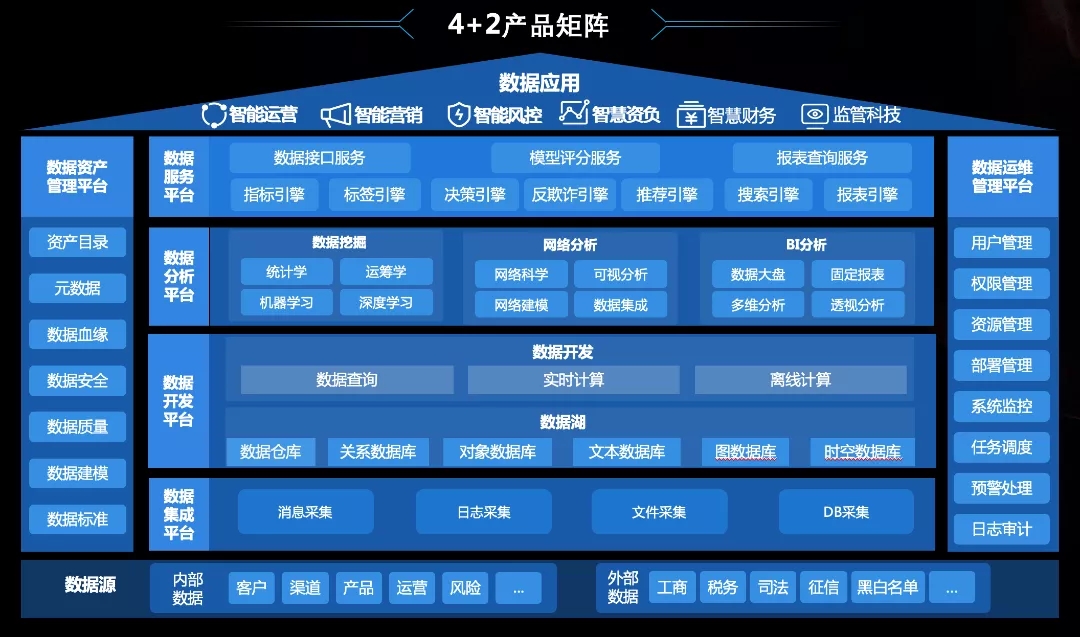 尊龙凯时人生就是博首页信息数据中台作为一站式数据服务平台,围绕数据的“采、存、建、用、管”全生命周期流程,包含数据管理体系、数据开发体系和数据运维体系产品。能够实现数据标准化、智能化、资产化、服务化,快速满足多样性的业务需求,助力金融机构释放数据价值,加速数字化转型。