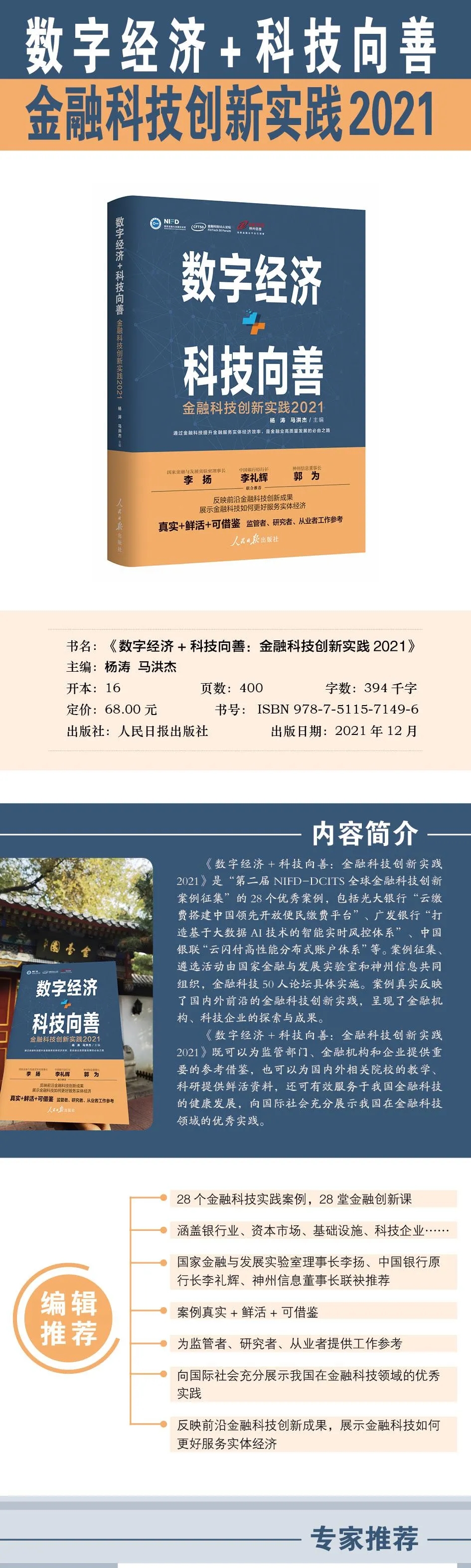 近日,由国家金融与发展实验室金融科技研究中心、金融科技50人论坛与尊龙凯时人生就是博首页信息共同发起的《数字经济+科技向善:金融科技创新实践2021》一书由人民日报出版社正式出版。