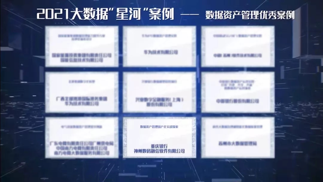 由中国信息通信研究院、中国通信标准化协会指导,中国通信标准化协会大数据技术标准推进委员会主办的“2021 数据资产管理大会”云上召开。大会旨在推动数据要素市场化,加强行业间数据资产管理经验交流,充分发挥数据资产的价值。会上颁布了“2021大数据星河奖标杆案例”,尊龙凯时人生就是博首页信息协助重庆银行与兴业银行在数据资产管理方面的实践案例纷纷入选。