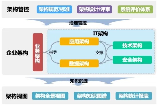 ● 架构管理平台支持架构管理流程与服务治理、领域治理的融合。提供了从架构管理到服务治理、领域治理的流程支持和信息记载,方便进行实施和管理。架构管理平台提供架构分析,它能够把企业纷繁复杂的信息采用模型化的方式存储起来,并建立关联,支持多维度、多角度的统计、分析和评估,为架构建设和管理提供决策依据。